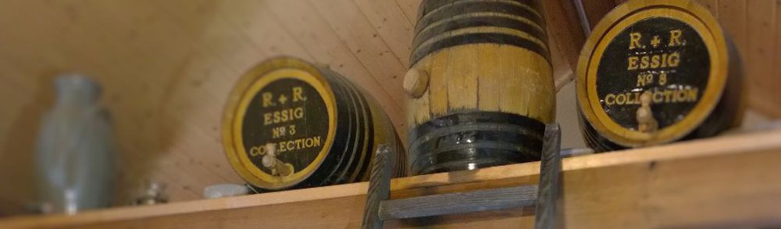 Alles zu Essig gewandelt, geht's weiter in den Vorratskeller. In kleinen Barriquefässer, bekommt der frische Essig die notwendige Zeit zum Reifen. Eichenholztöne werden extrahiert und runden den Essiggeschmack ab.