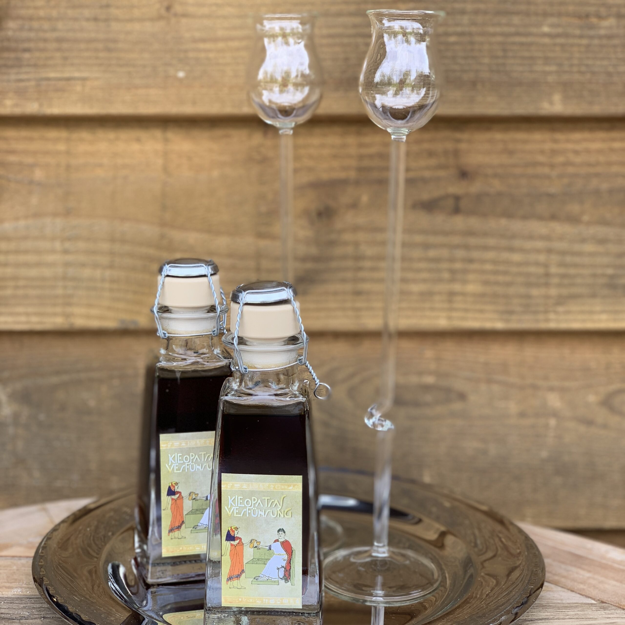 Kleopatras Verführung ist eine betörende Komposition aus Weissburgunderessig, Schokolade, Honig und Gewürzen.