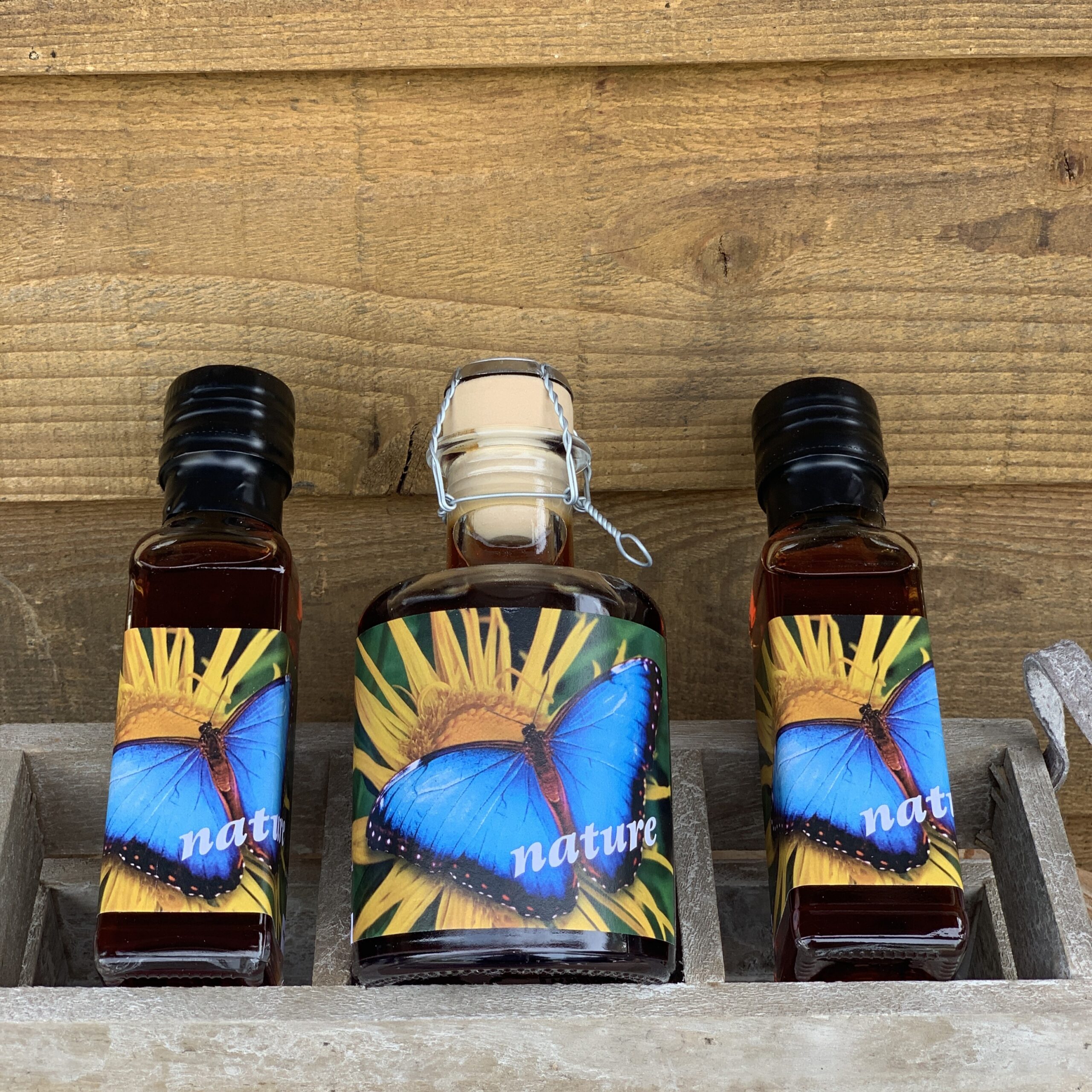 Gourmet-Essigcréationen Balsamessige für Speisen, als Apéritif oder Digestif Infos zu den Aromen Nature – Mariposa: mit Brombeeren, Himbeeren, Waldhonig & Gewürzen Geeignet als Digestif sowie für Desserts aller Art. Oder ein paar Tröpfchen auf dem Salat? Probieren Sie es aus! … mehr…